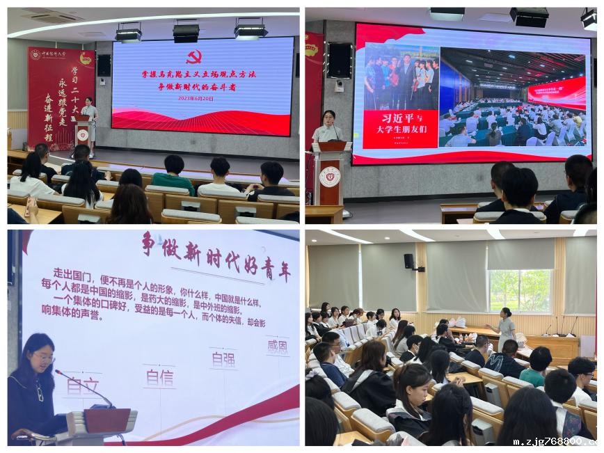 会上,杨婉老师以“掌握马克思主义立场观点方法,争做新时代的奋斗者”为主题,从“六个必须坚持”,坚持人民至上、坚持自信自立、坚持守正创新、坚持问题导向、坚持系统观念、坚持胸怀天下带领学生学习党的二十大精神,勉励学生坚定理想信念,厚植家国情怀,在面对各种矛盾问题和重大风险挑战时始终做到方向明确、头脑清醒、应对有方、行动有力。夏露老师以“牢固树立安全意识,争做新时代好青年”为主题开展行前安全教育,提醒学生重视意识形态安全、人身安全、财产安全、谨防电信诈骗等,强调要强化身份意识、筑牢安全防线,出国期间,要严格遵守各项纪律,文明上网,团结协作,互帮互助,展现中国药大人昂扬进取的精神风貌。